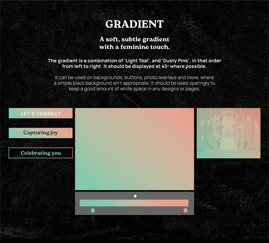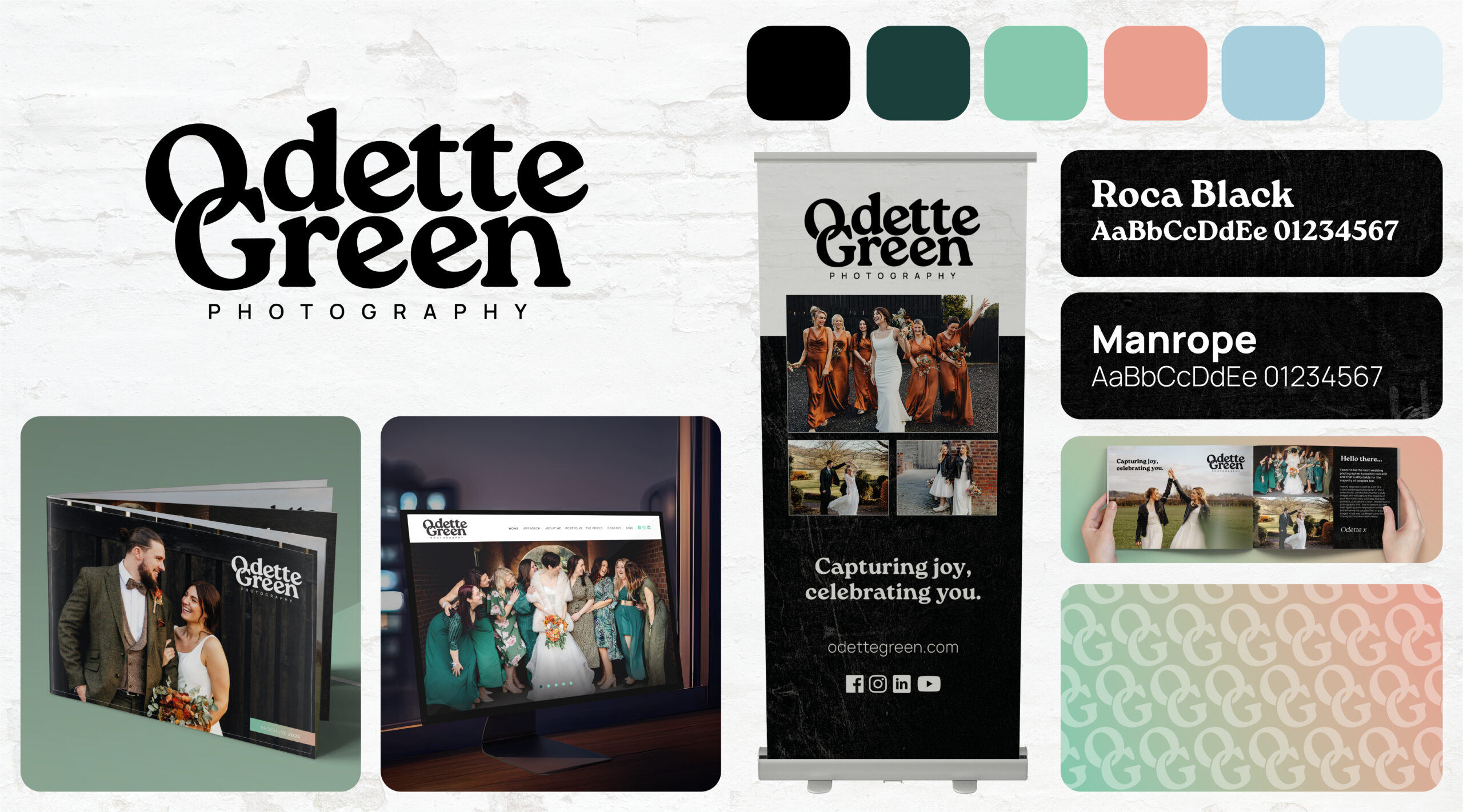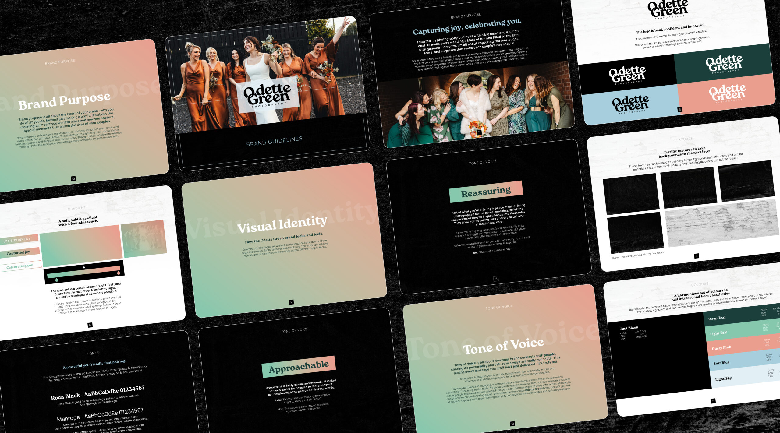 The upfront strategy work was a key part of the project. Together with Dan, I helped Odette define a brand purpose centred on capturing joy, celebrating people and creating a relaxed space where couples can simply be themselves. That thinking runs through every touchpoint â from the visual identity to the brand voice.